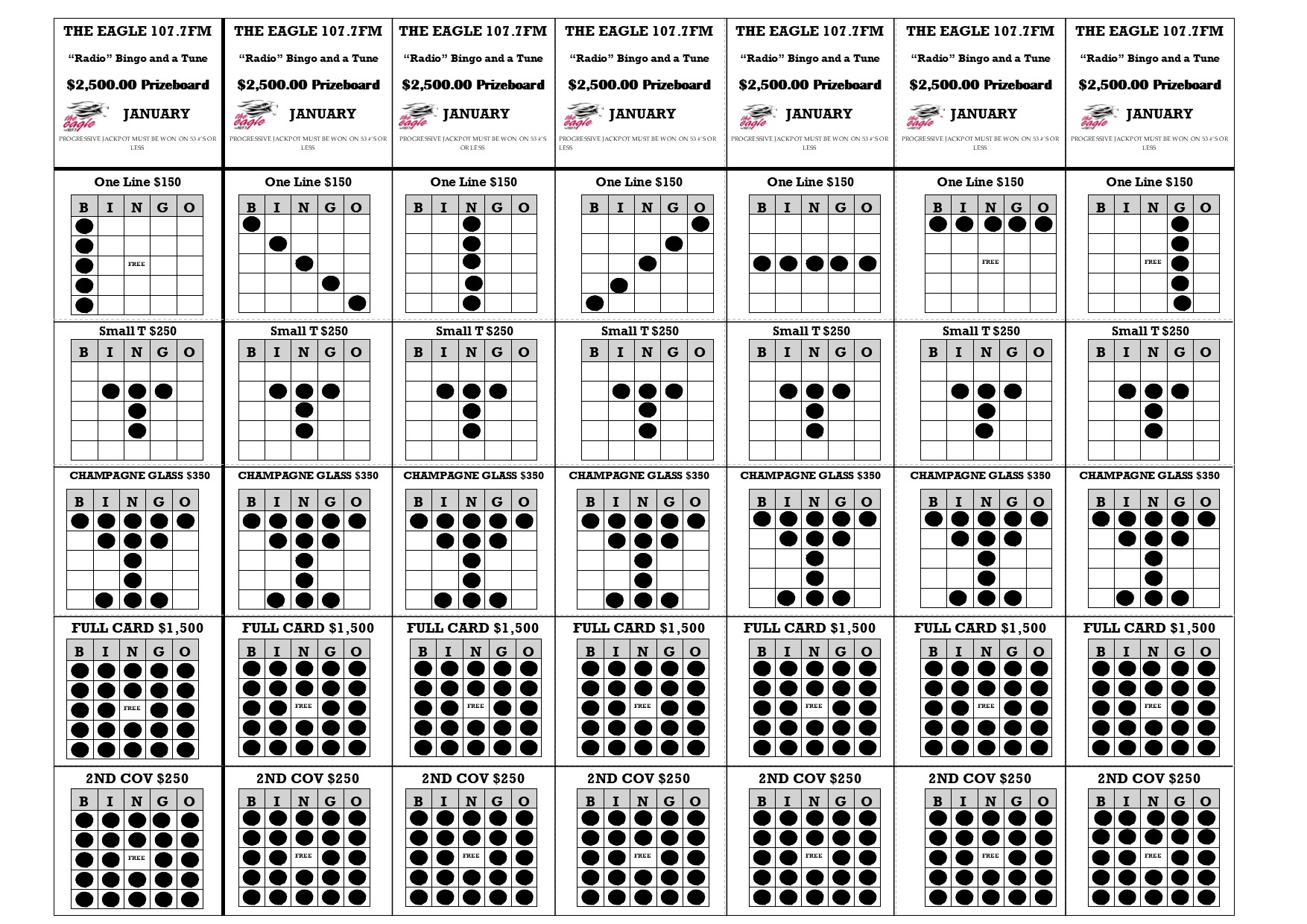 THE SMALL T, CHAMPAGNE GLASS, FIRST FULL CARD AND THE SECOND FULL CARD CAN ONLY BE WON AS SHOWN IN THE JANUARY 2026 PROGRAM.